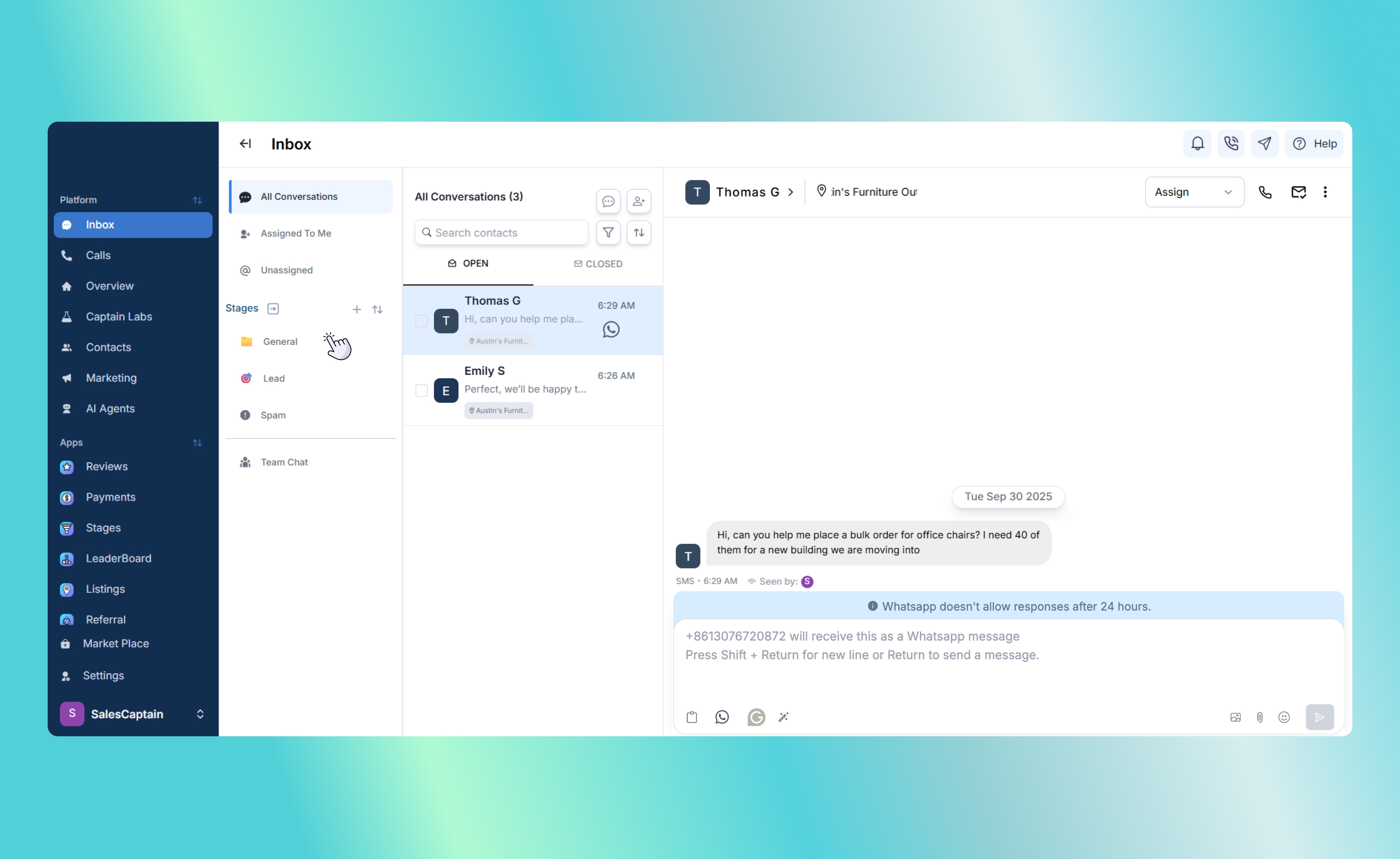 Here’s a quick look at how your team can use SalesCaptain’s WhatsApp integration to streamline communication, respond more efficiently, and ensure every customer is attended to.